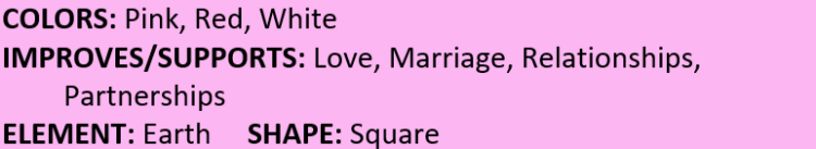 The Relationships area represents earth and yin energy, which complements your Taurus rising sign. It is located in the rear right area (Western) or southwest side (Classical) of your home. Focusing your Feng Shui adjustments on this area will manifest positive connectedness energy, helping to offset your natural inclination to narrowly focus your energies on survival and your self-worth. You will be activating the qualities of this area, which are receptivity, openness, and trust. (Journey to Mastery, Feng Shui for Life, p.32)